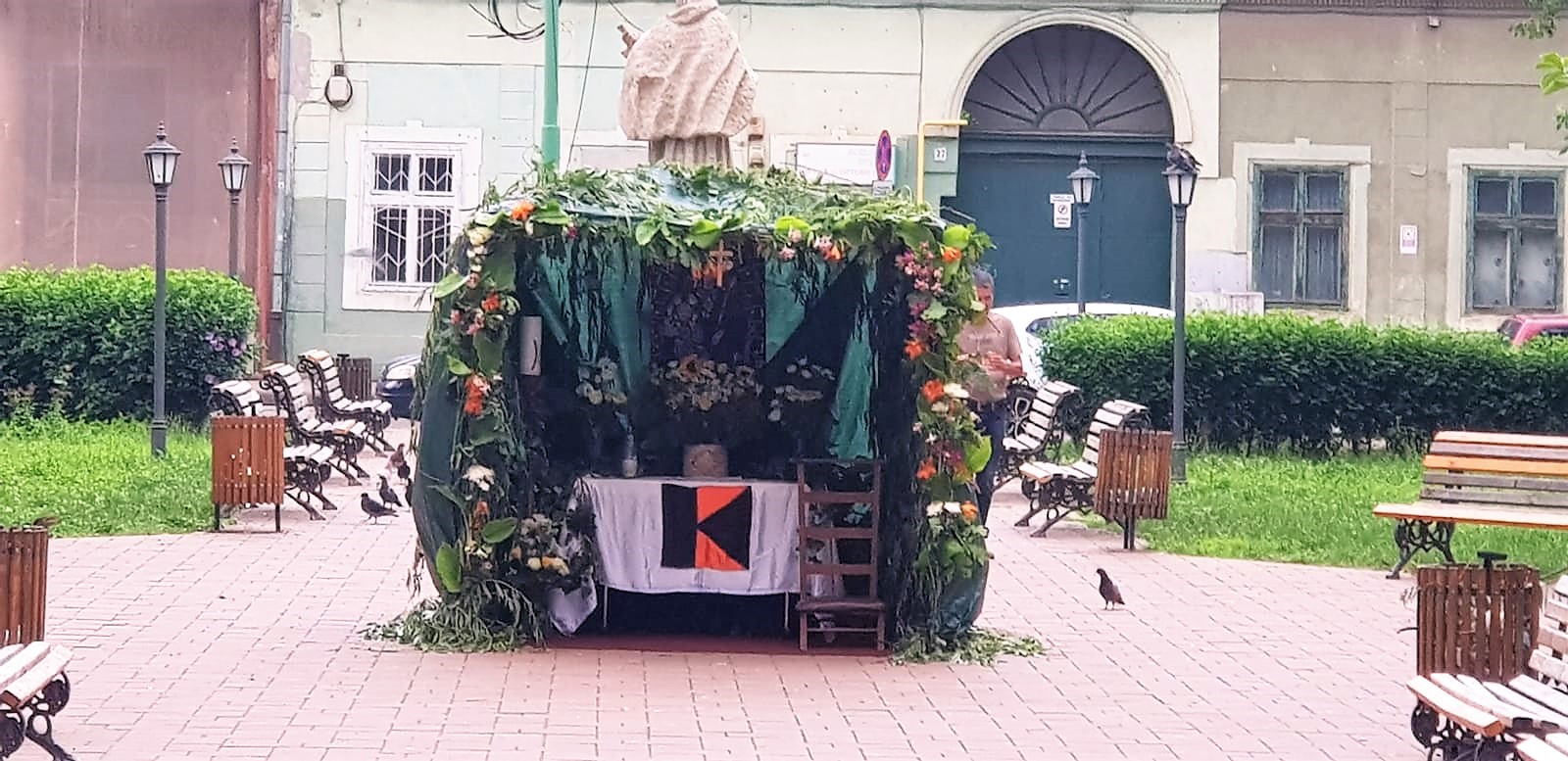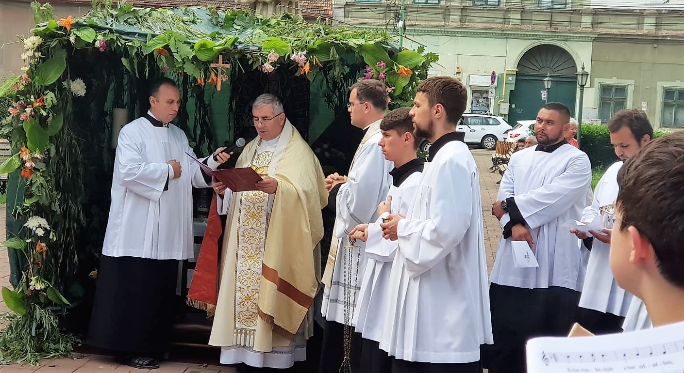 Sfânta Liturghie a fost urmată de procesiunea mult aşteptată de credincioşii parohiei, un prilej pentru ca ei să-şi mărturisească credinţa în mod public la altarele ridicate în biserică și în jurul ei. La fiecare altar special amenajat s-a proclamat evanghelia şi s-a citit rugăciunea credincioşilor urmată de binecuvântarea cu preasfântul sacrament. Unul dintre altare a fost realizat de membri familiei Kolping Millennium. S-au adunat crengi de tei, iederă și salcie, dar și flori deosebite: crini, trandafiri pentru împodobirea în exterior a altarului, iar în interior au fost așezate însemnele familiei Kolping.
