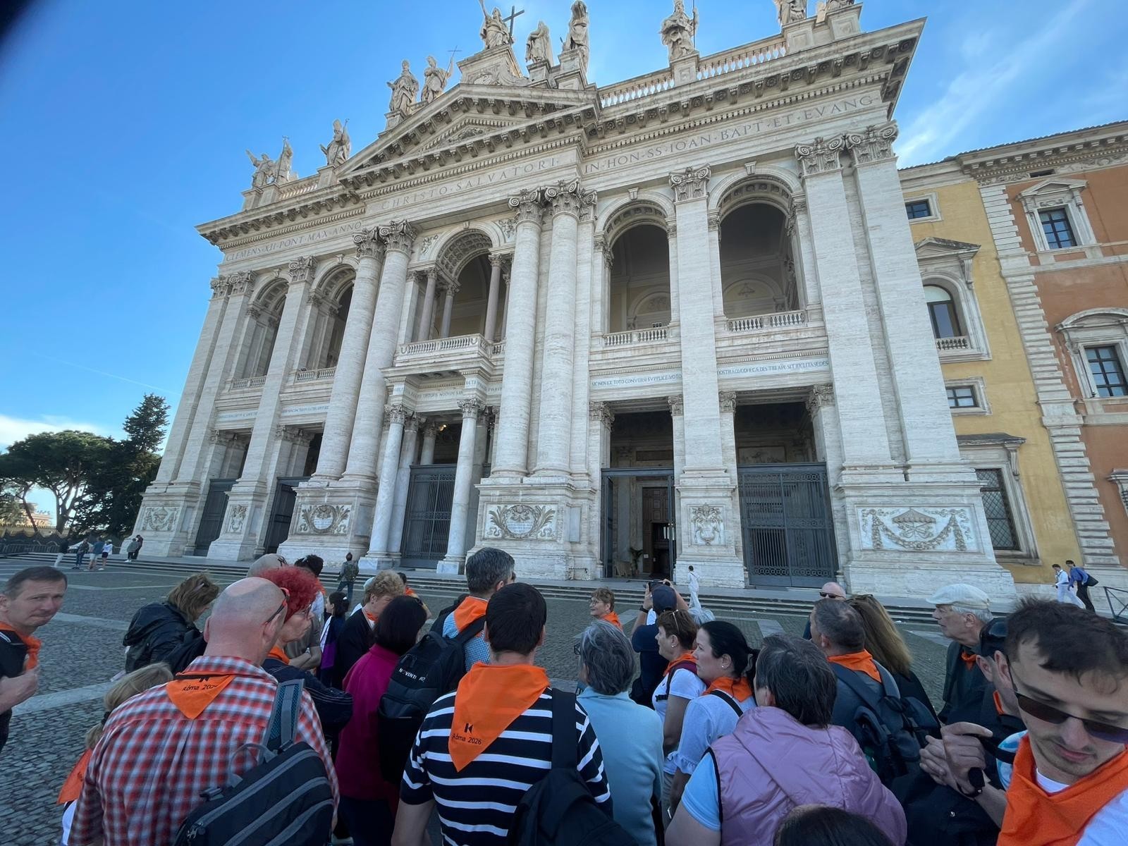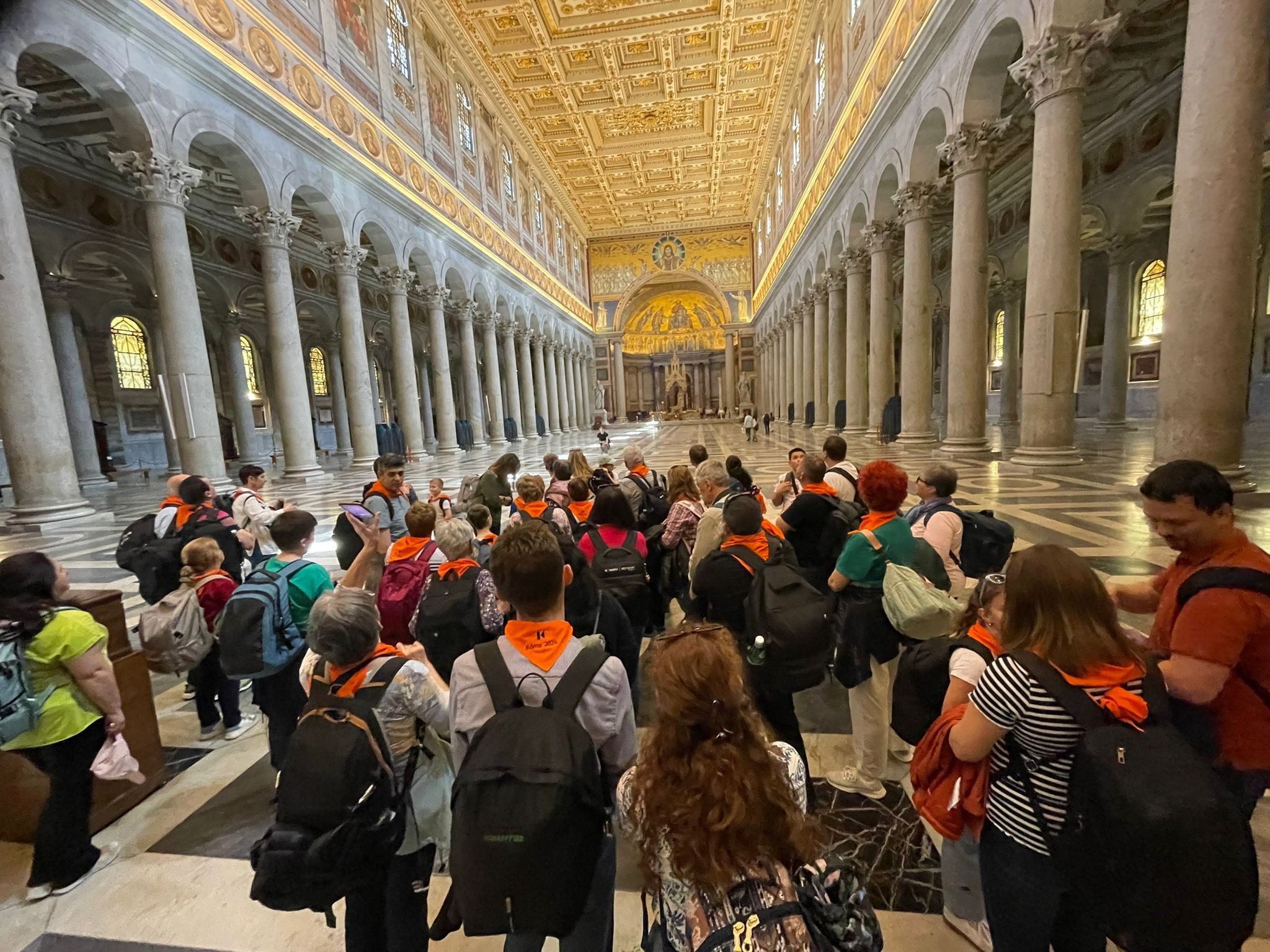 Grupul, format din 48 de persoane, a reunit toate generațiile – de la copii foarte mici până la vârstnici –, evidențiind caracterul comunitar și intergenerațional al familiei Kolping. Prima oprire a fost la Bazilica Sfântul Pavel din afara Zidurilor, ridicată deasupra mormântului apostolului Pavel. Pelerinii au admirat arhitectura impresionantă a bazilicii, frescele fațadei și galeria portretelor papilor, precum și poarta sfântă dedicată anului jubiliar 2025.